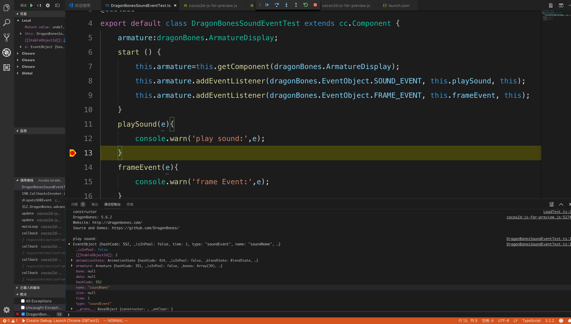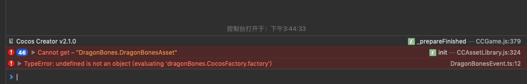 Creator2.1.0 播放龙骨5.6导出动画时,如果动画里面带有声音事件,会发生错误: