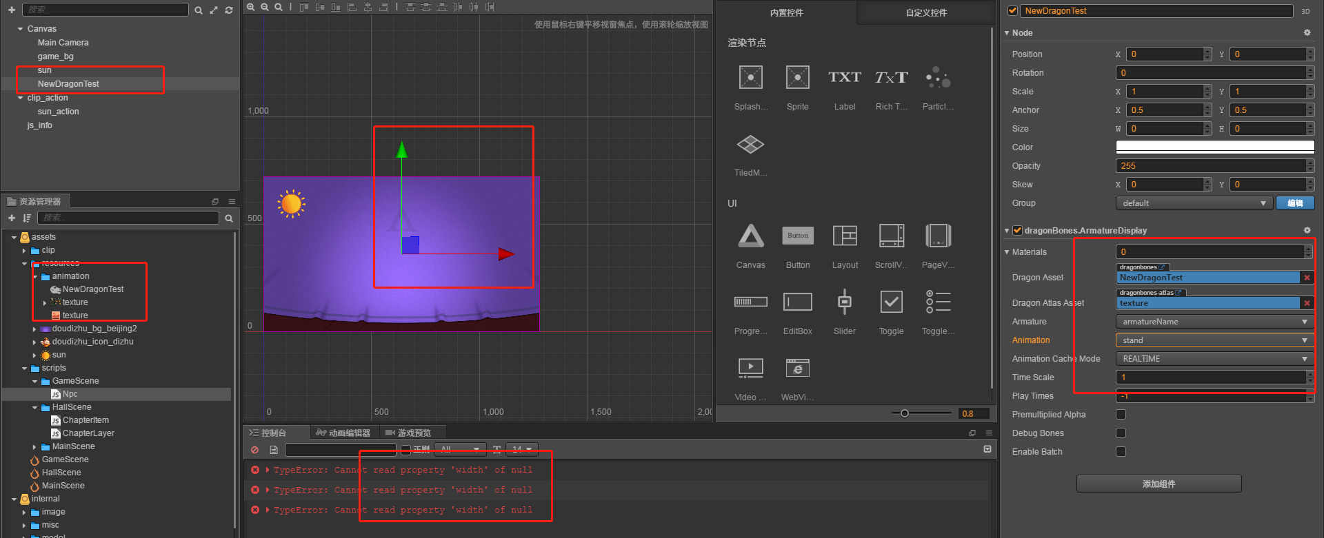 如图,我看了官方教程…把NewDragonTest的资源拷贝了过来…