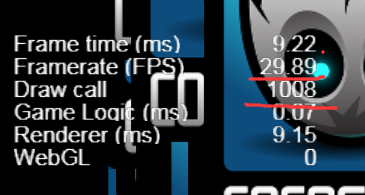 drawcall一直是个位数,场地精灵是1000个。但是fps是17左右。然后在nobatch,drawcall是1000,场地精灵1000,结果fps还反而是30左右,什么情况?