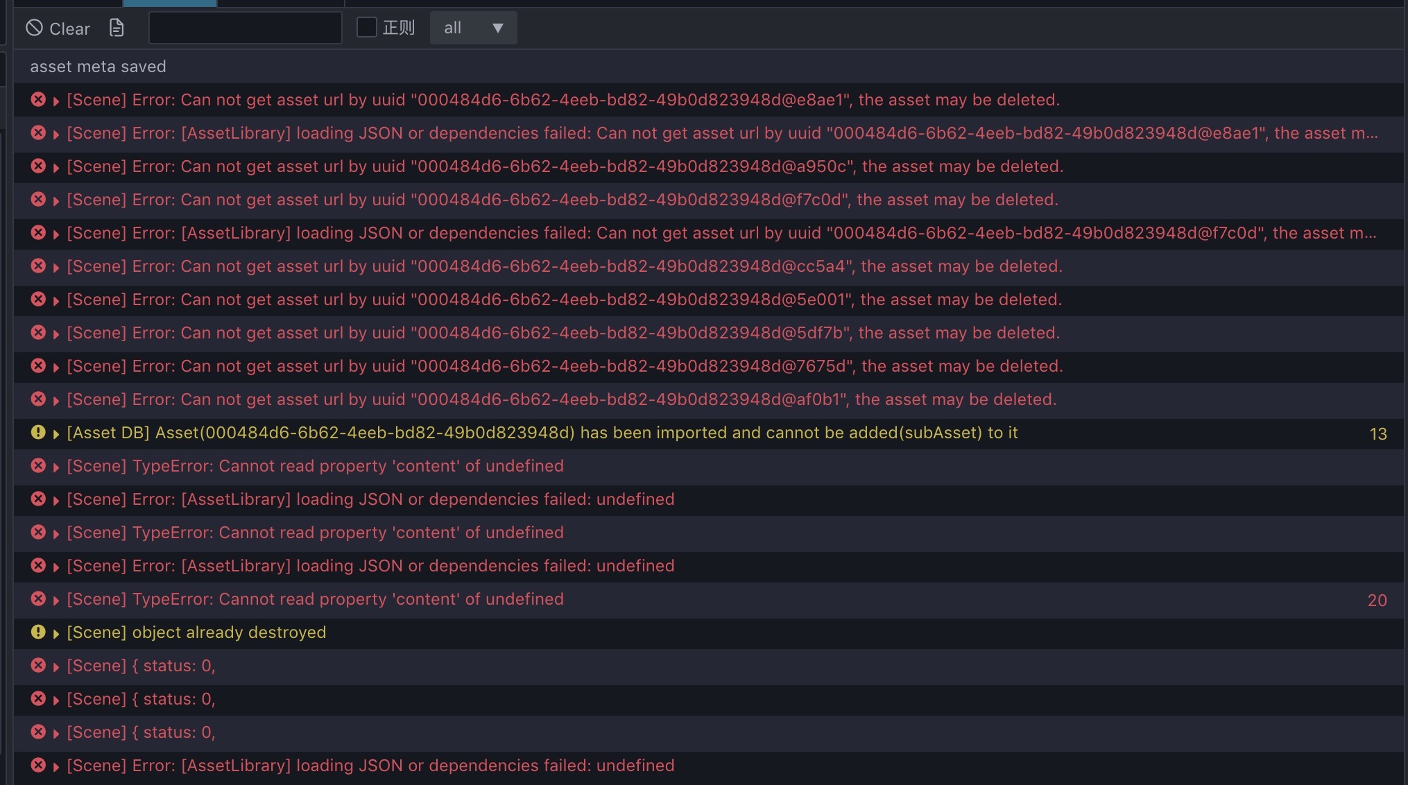 ,把本地lib和temp文件夹都删除重新生成,dump模型的材质报错,模型的prefab也破坏不能再使用了