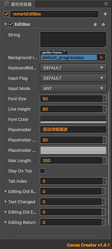 界面上有几个EditBox组件,拖出来时默认大小是W160,H40,修改为自定义WH,保存。