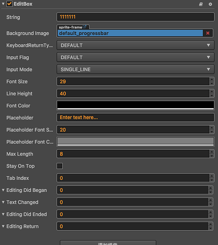 当吧editbox控件不旋转时,输入的文字正常, 如图:
