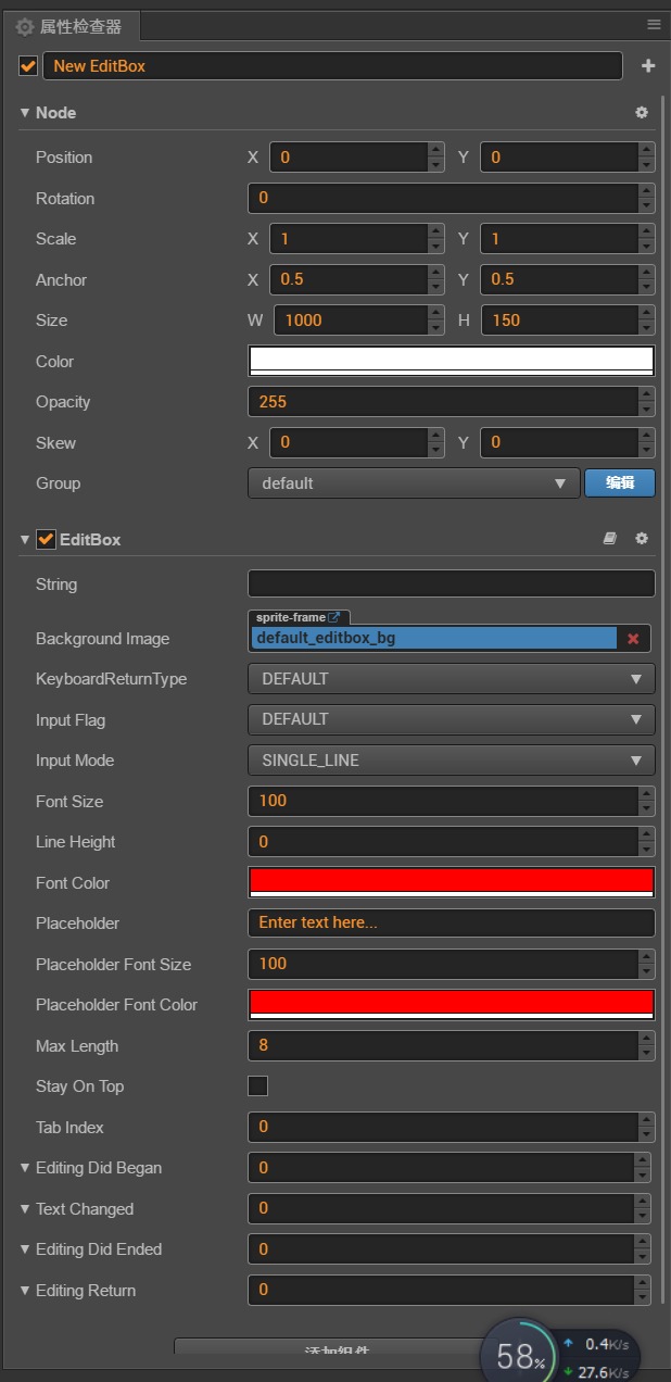 EditBox的颜色在没有输入完成之前,强制为黑色,这个颜色怎么修改,占位符颜色和文本颜色都是设置成红色的