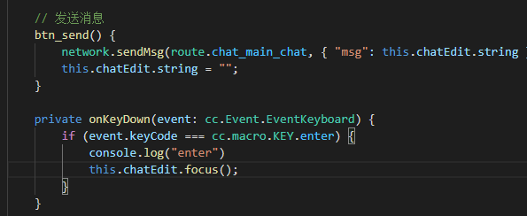 web上刚进入游戏,按enter键,使editbox获得获得焦点,再次按enter调用btn_send发送消息,然后按enter,onkeydown函数不触发,不能再获得焦点了