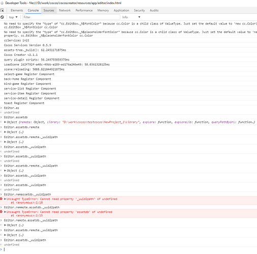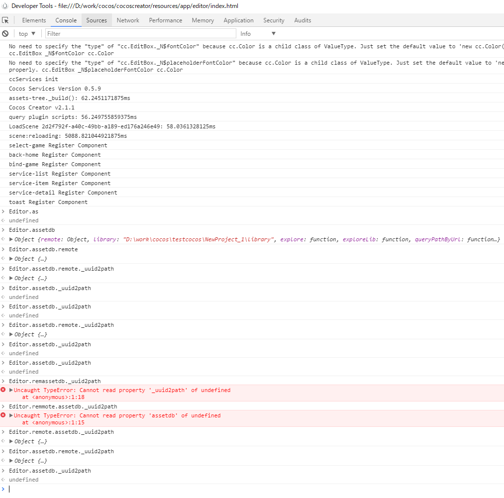 控制台也试过了,Editor.remote.assetdb._uuid2path ,Editor.assetdb.remote._uuid2path 可以取到值,但Editor.assetdb._uuid2path不能