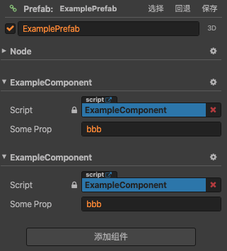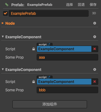 打开prefab,在prefab的某一个node上放>=2个同名组件,但是属性不同
