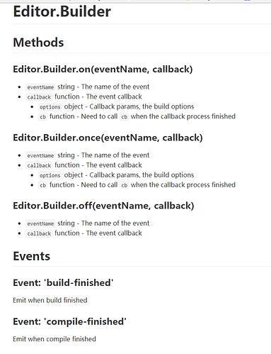 不过 Editor.Builder.on 好像没效果,编译结束没有回调到,试了