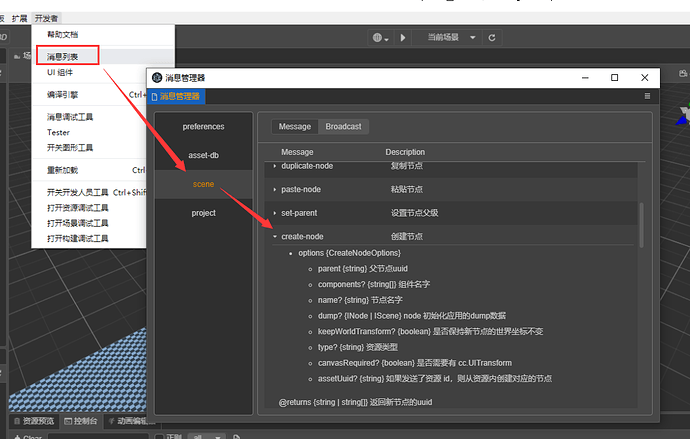 你好,IPC 消息的列表和文档请在编辑器菜单中 开发者 》消息列表 参考,