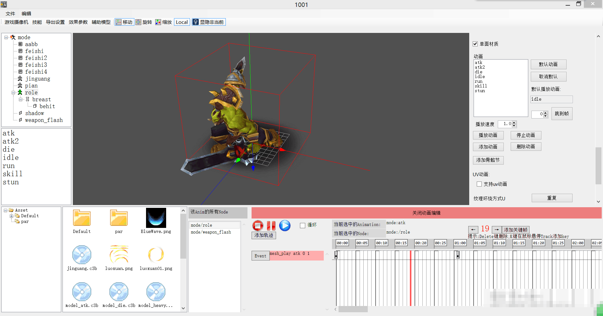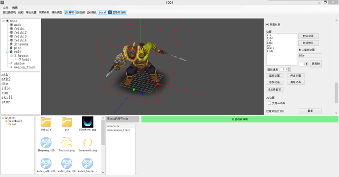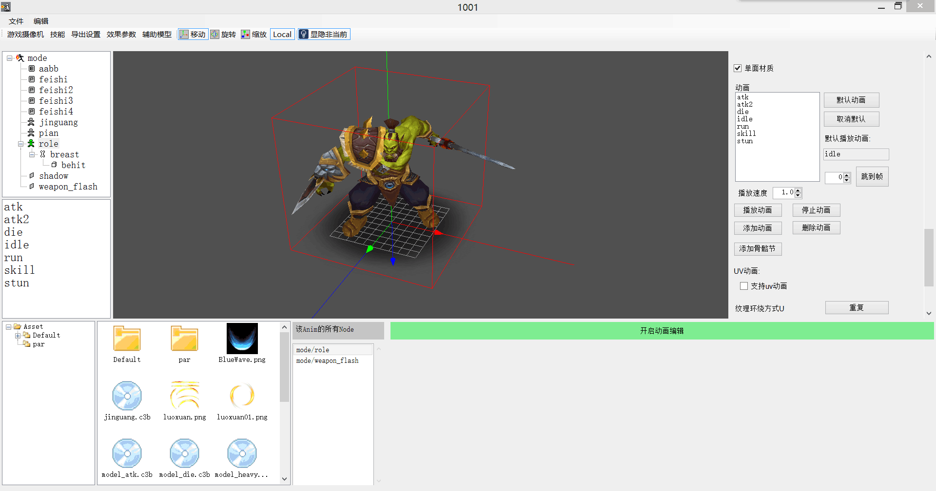 编辑器使用C#开发,可以直接使用fbx格式的模型,pu粒子素材,plist等等资源,一键直接导出effect-x的格式,在C++代码里可以很方便地加载和使用。