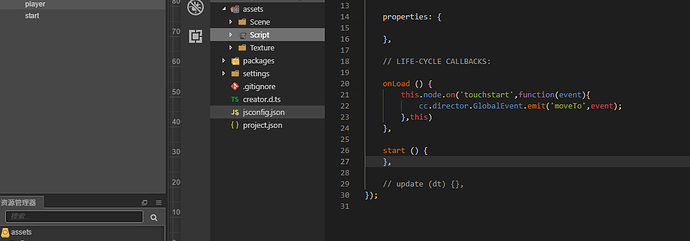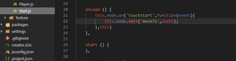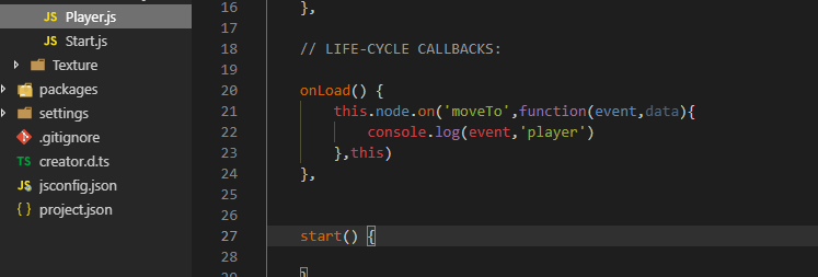 简单事例,在start里发射emit自定义事件到player接收