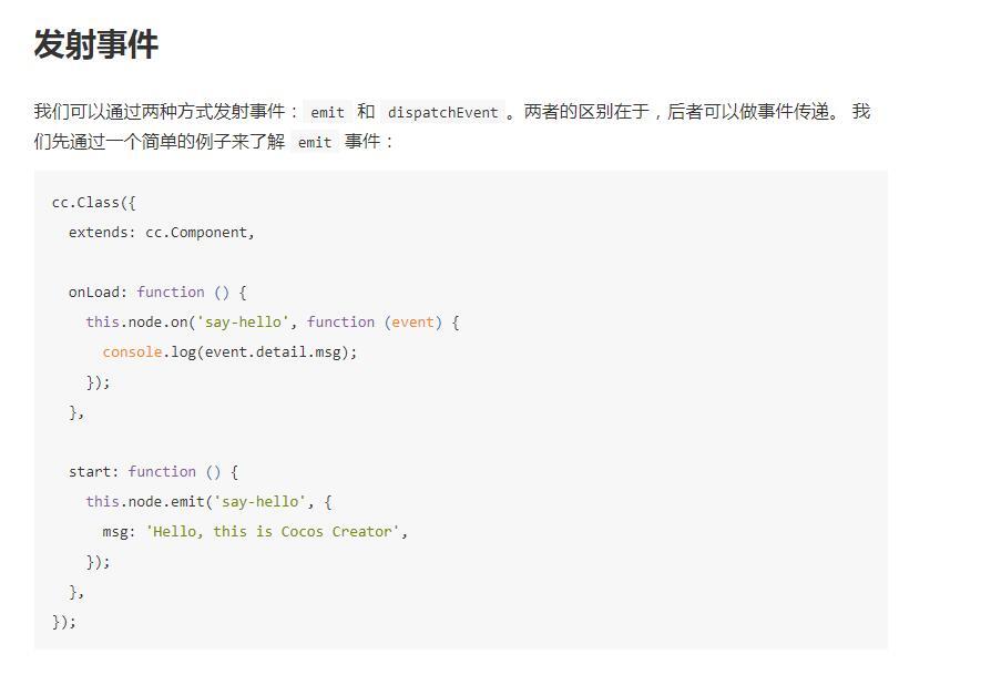 新手,官方文档里的emit写的不清楚,全局的cc.director.emit可以直接传递自定义事件,不需要写了