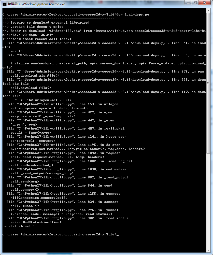 2、尝试下载cocos2d-x-cocos2d-x-3.16,希望通过download-deps.py找到下载地址