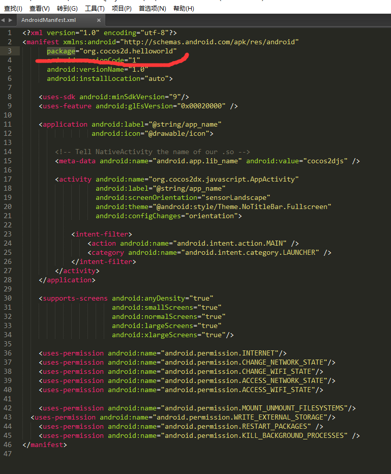恩,org.cocos2d.helloworld这个就是包名