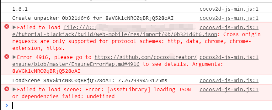 我想把整个打包的Web项目,嵌入到我们公司的Android app里面通过加载本地Html来访未游戏index.html页面,就是出现了 4916错误