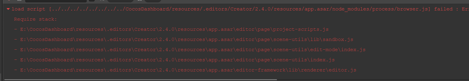 Error: Cannot find module '../../../../../../../../CocosDashboard/resources/.editors/Creator/2.4.0/resources/app.asar/node_modules/process/browser.js'