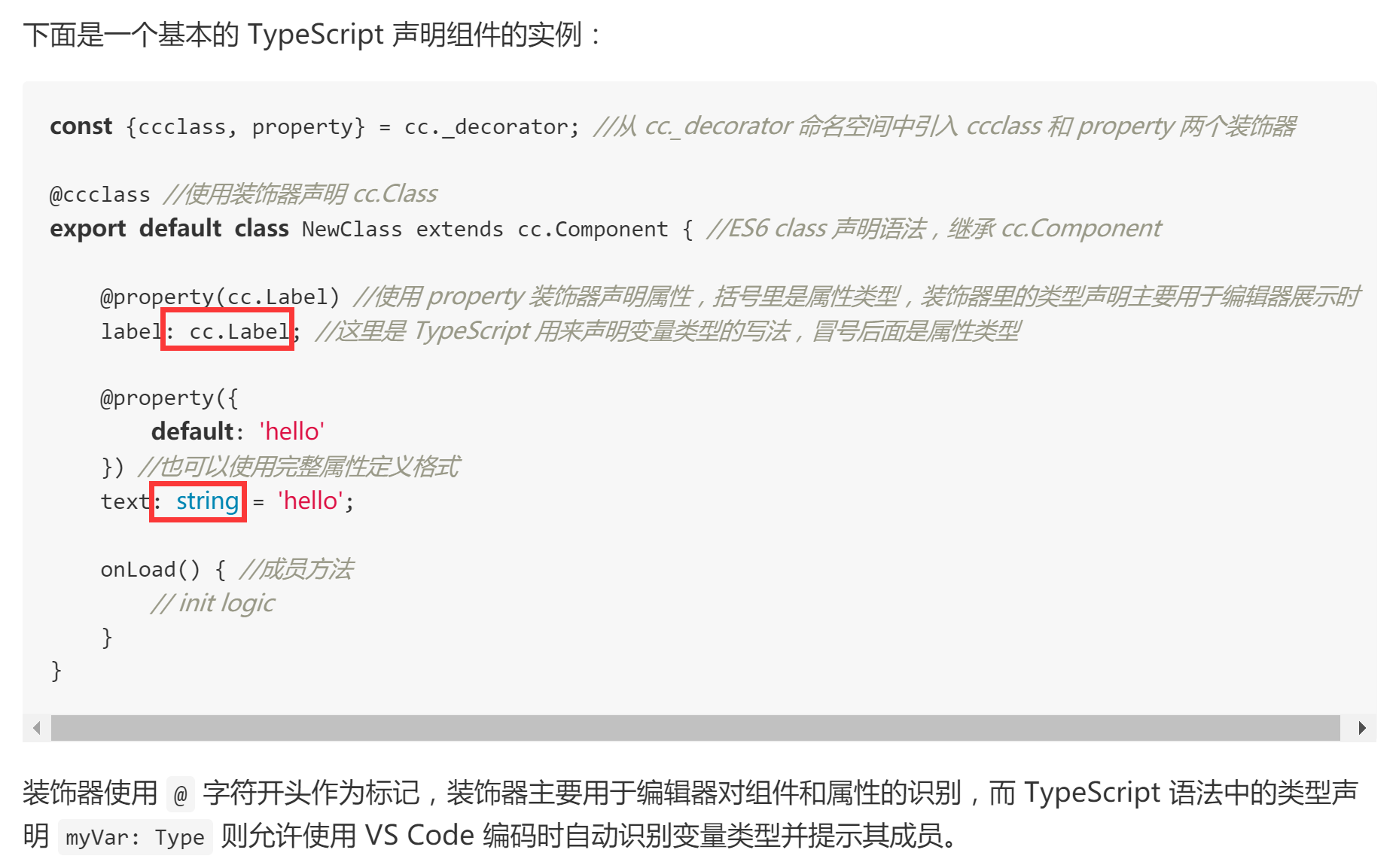 我看到更新文档上对支持使用 ES6 Class 声明 cc.Class 和组件有重点描述,但例子上只有ts的实例,怎么声明才是符合规则的声明呢?有例子吗?