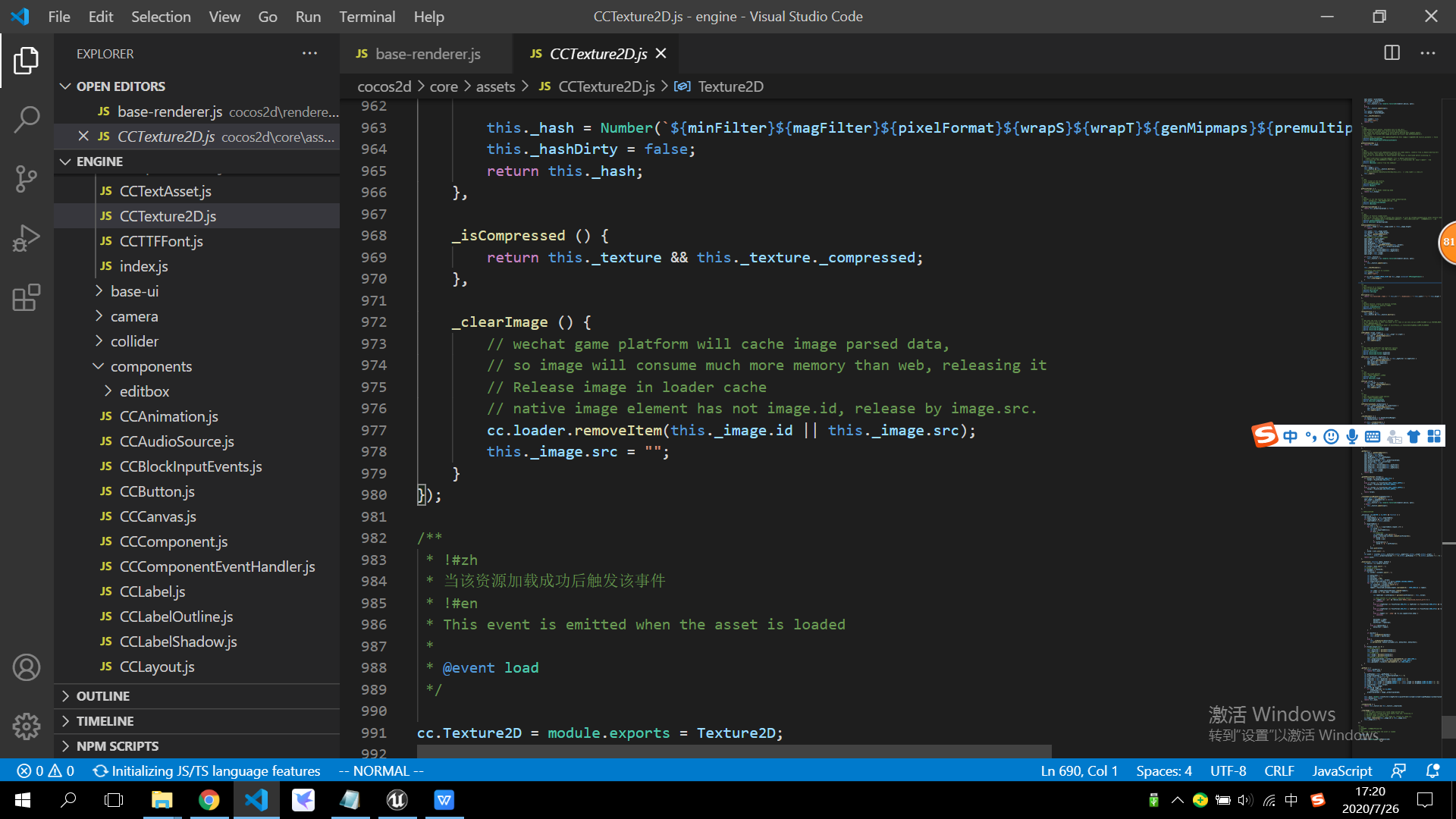 启动项目后,手动在chrome控制台调用cc.sys.garbageCollect()清理原生垃圾对象后的内存
