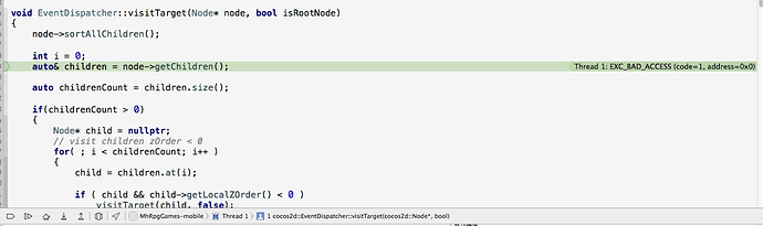 毫无提示的崩溃掉 引擎 是 3.8 EventDispatcher::visitTarget 频繁的Crash 掉.