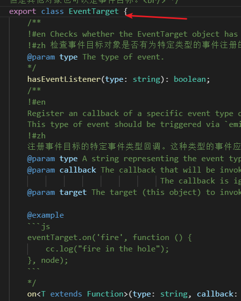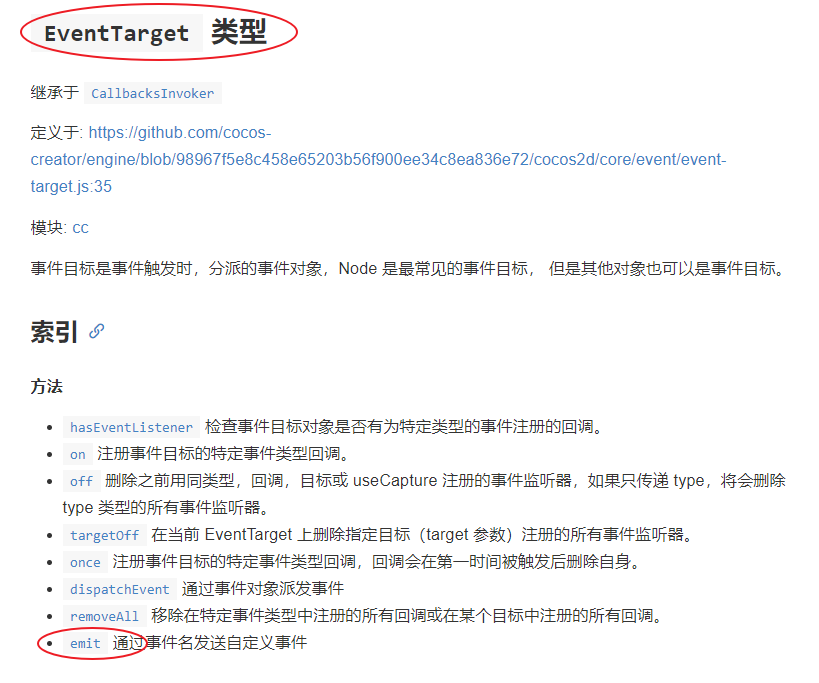 描述:我在官方API上看到EventTarget类中有emit方法,如图