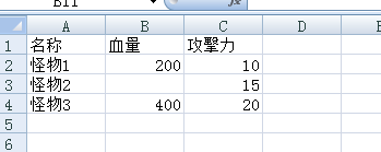 第二行数据,血量值为空,攻击力为15 转化后变成了血量15攻击力为空了