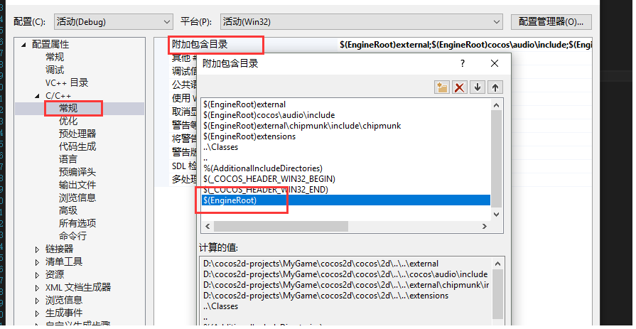 问题解决,要在你们的启动项目下: 右键->属性->c/c++ -> 常规 -> 附加包含目录, 在目录里面添加$(EngineRoot)