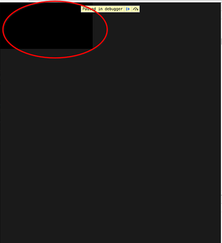 在main.js这里断点后看到左上角有一个黑色的矩形块,窗口底色是灰色,如下
