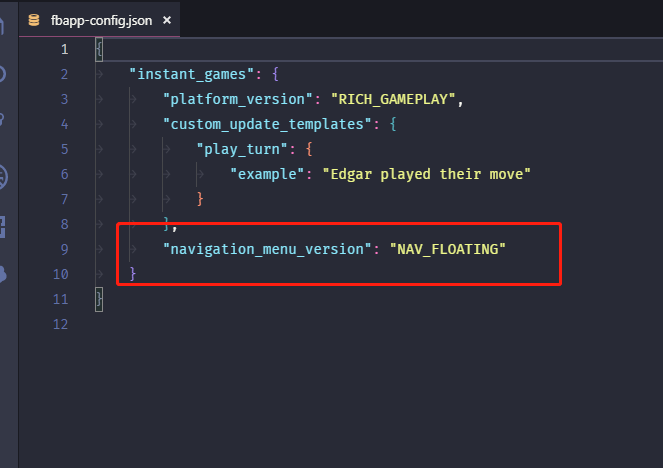 此次上传的文件中包含的捆绑包配置文件具有以下无效配置:Must specify property ‘navigation_menu_version’ in bundle config: https://developers.facebook.com/docs/games/instant-games/sdk/bundle-config.