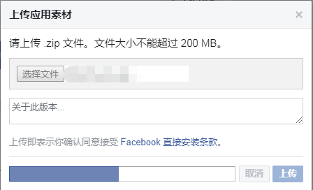 详细报错信息:cocos creater打包上传至facebook时会停在一半,上传停止。再点上传还是一样。