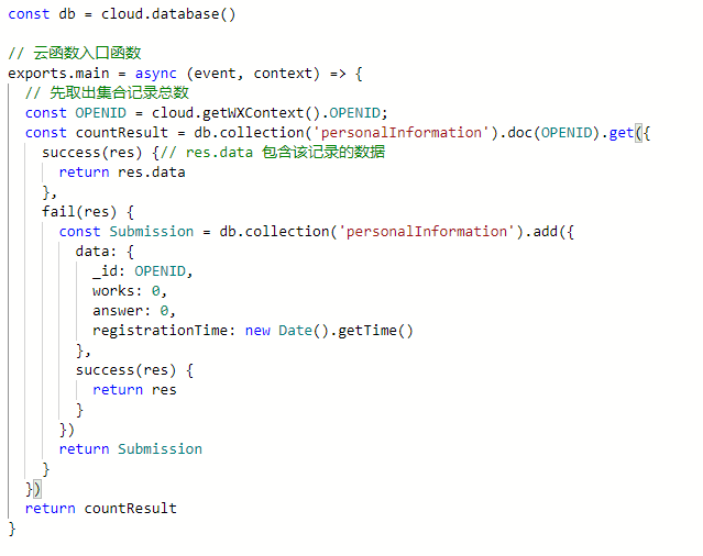 还是db.collection(‘personalInformation’).doc(OPENID).get 查询personalInformation集合中必须要有OPENID值否则就报错