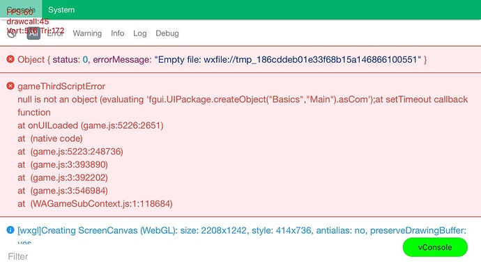 复现方法:直接跑FairyGUI-cocoscreator/test官方提供的demo,然后发布到微信小游戏,超过4M的res资源放在服务器。用Android机打开: