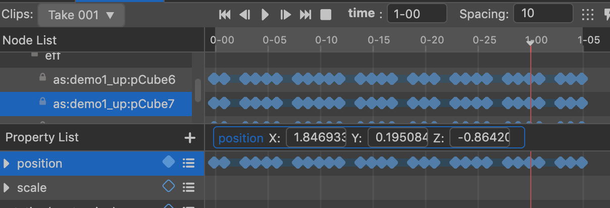确实,问题就是在maya里只存在两个位置的关键帧,但是导到cocos里就存在了其他点,甚至每次关键帧点的位置信息不一样。