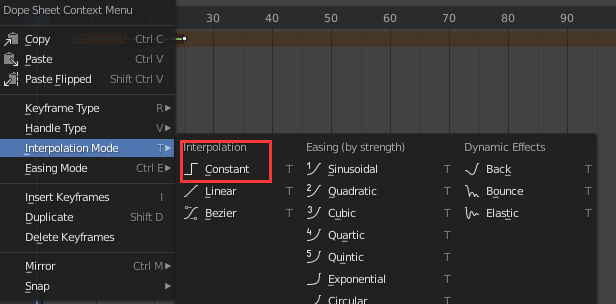 看起来还是fbx转gltf的那个插件有问题,我用blender里直接导出glft就可以用。。。另外想要让一条动画轨道是constant的,必需整条都是contant的(gltf里的规定),不能是单独一些关键帧是constant的。
