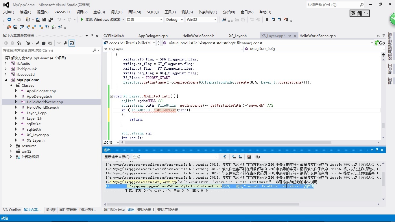 error C2352: “cocos2d::FileUtils::isFileExist”: 非静态成员函数的非法调用