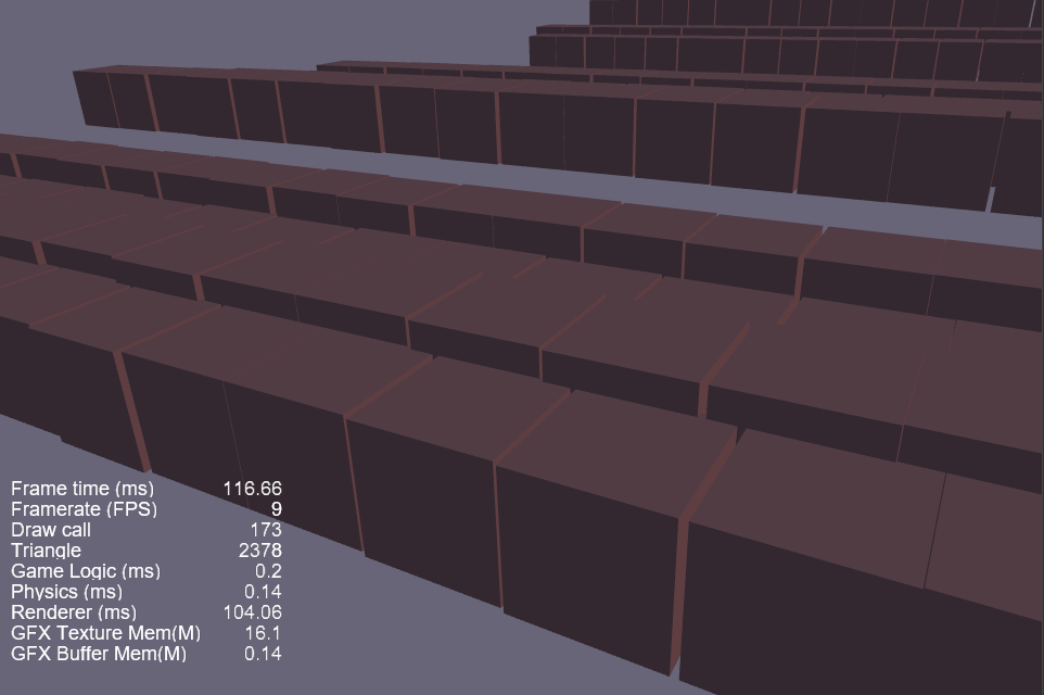 是引擎没有优化的问题?同样尺寸同样数量的cube,在unity里运行FPS能维持在20以上。