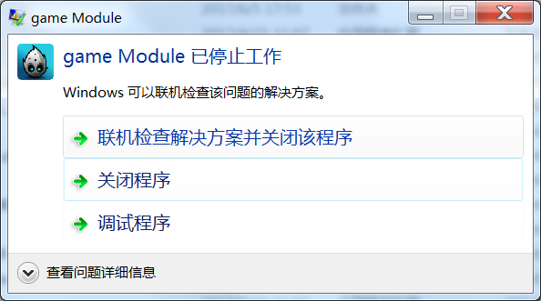 创建新项目编译正常运行时显示Game Moudle已停止工作