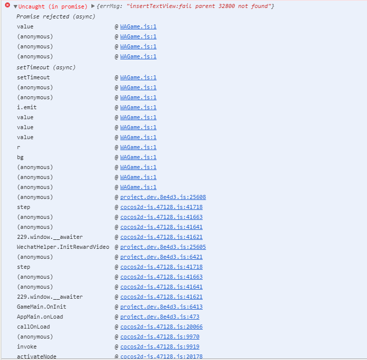 gamePage.html:1 Uncaught (in promise) {errMsg: “insertTextView:fail parent 32800 not found”}
