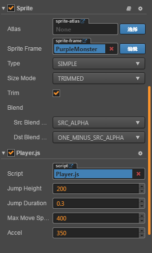 //player 节点,用于获取主角弹跳的高度,和控制主角行动开关