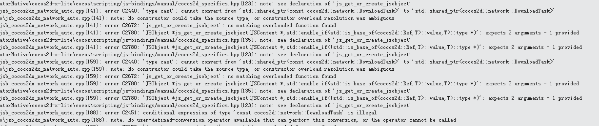github库 cocos2dx-lite v1.4 生成jsb绑定编译出错