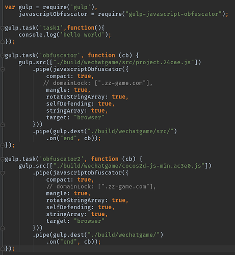本人开发的微信小游戏,参考了这个帖子的方法使用了obfuscator做了混淆