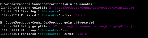 环境配置完毕后cmd命令对导出的项目进行操作(src下的project.js文件和wechatgame下的cocos2d-js-min.js文件)提示操作成功