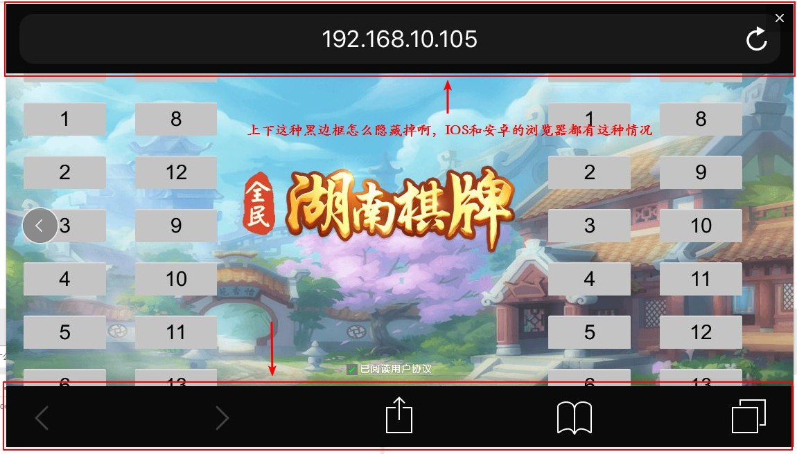 发布H5 webMobile版本,在安卓和ios手机浏览器上面运行预览的时候,都会出现如图所示的上下黑色边框,请问这个怎么隐藏呢?谢谢大佬们解答