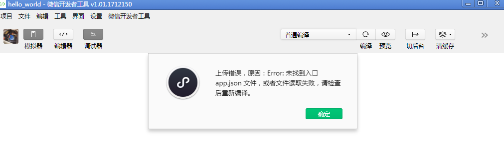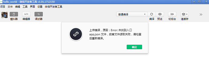 @wfeel @lostjoker 最新 v1.02.1712280 确实会报这个弹窗, 但是你用微信工具新建一个示例项目, 然后吧 creator 发布后的资源复制过去, 就可以运行了.