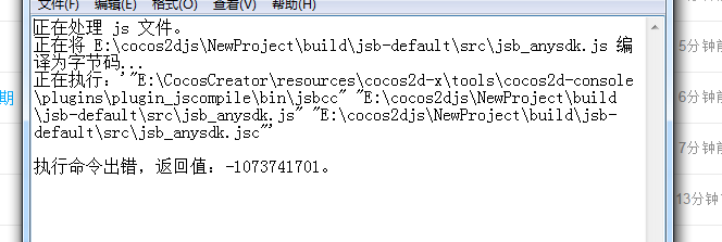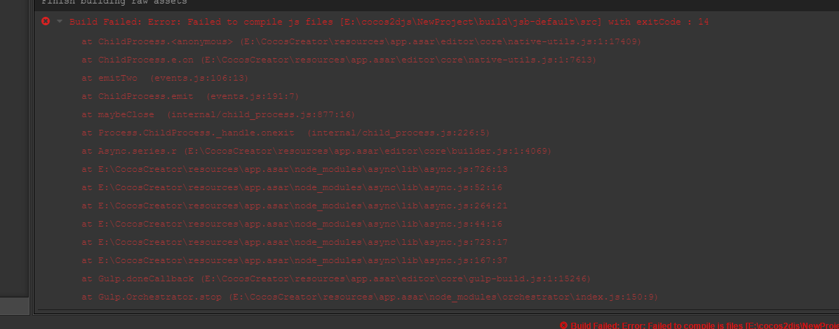36.131Z - error: Build Failed: Error: Failed to compile js files [E:\cocos2djs\NewProject\build\jsb-default\src] with exitCode : 14