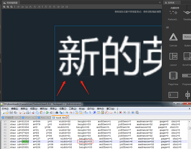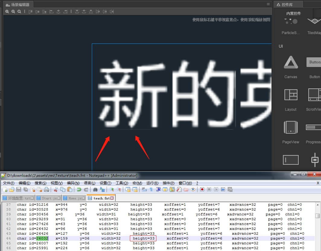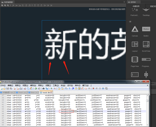 上面是DEMO,放大就可以看到有不少白色的线,这个字体使用hiero生成的字体文件