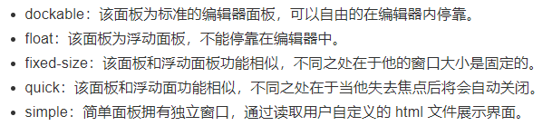 可发现设置了float模式也跟dockable模式一样,还是能停靠到编辑器中,改成html文件作文入口能解决了,但是不知道怎么做多语言化,难道要在JS动态修改DOM内容?