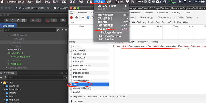 于是找找找 找到了inspector: ‘packages://inspector/inspectors/comps/label.js’ 这样一句话,看我白嫖党的威力
