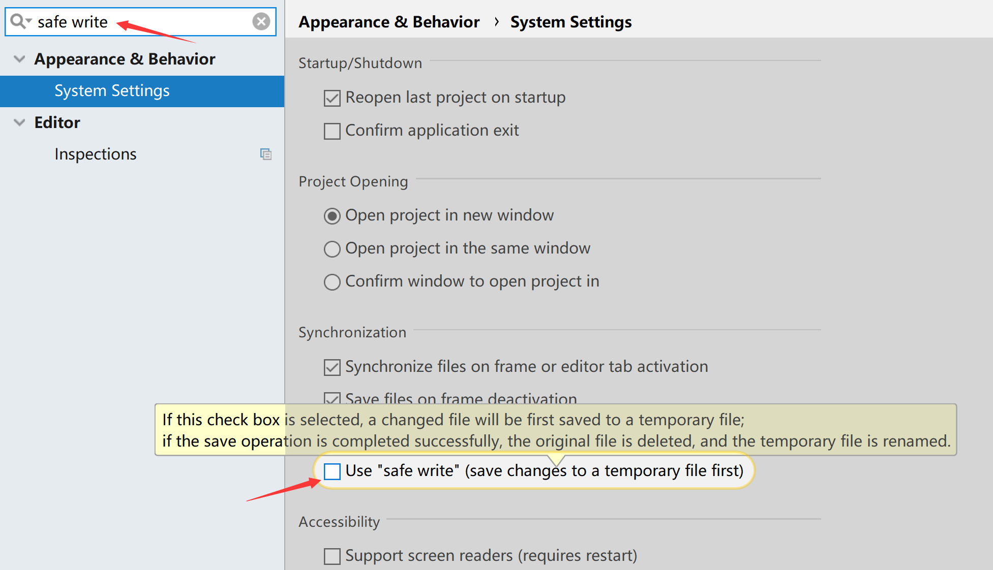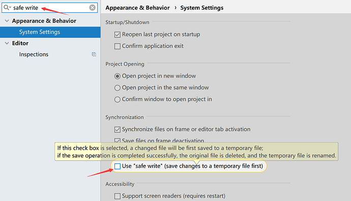 Creator文件改动的监测在Creator处于后台的时候生效,一旦切回Creator,文件改动监测就停止了,代码文件改动不会触发编译。所以在你改完代码,切回Creator的那一刹那,如果代码文件还没有被IDE保存完毕,就会发生这种情况。尤其可能发生在WebStorm开启自动保存、Safe Write(不直接写原代码文件,先把代码改动写到一个临时文件,再用临时文件替换原代码文件)。 如果用的是WebStorm,可以尝试关闭Safe Write,或手动按Ctrl+S再隔零点几秒切回Creator。