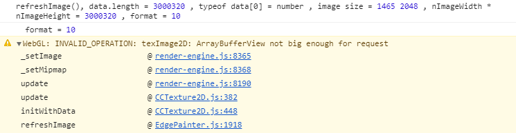 结果是有的图像能显示,有的不能显示。不能显示的时候错误是“WebGL: INVALID_OPERATION: texImage2D: ArrayBufferView not big enough for request”。