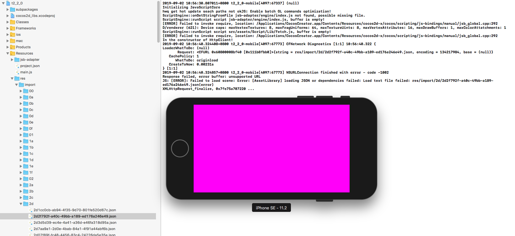 JS: [ERROR]: Failed to load scene: Error: [AssetLibrary] loading JSON or dependencies failed: Load text file failed: res/import/2d/2d2f792f-a40c-49bb-a189-ed176a246e49.json(error)