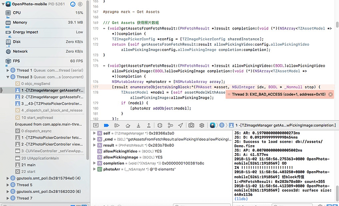 在一般的IOS工程中能正常调用,但是在cocos的ios工程中调用就崩溃了